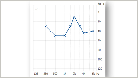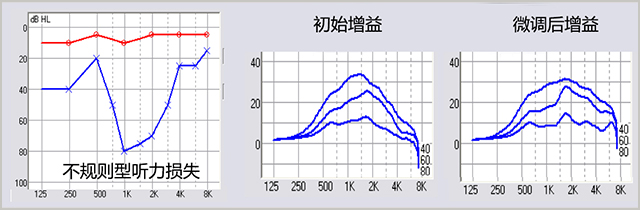 <span style="font-size:16px;"> 我們今天分享的是處理不規(guī)則型聽力損失的驗配技巧。</span></p><p><span style="font-size:16px;"> 什么是不規(guī)則型聽力損失?</span></p><p><span style="font-size:16px;"> 不規(guī)則型聽力損失,是指聽力圖上曲線彎彎曲曲,毫無規(guī)則的聽力損失,如下圖。</span></p><center><span style="font-size:16px;"><img alt="" src="/upfiles/201808290214166730.png" width="440" height="250" /></span></center><p></p><p><span style="font-size:16px;"> 它屬于復雜案例的一種,通常,我們在驗配過程中需要耗費大量精力,反反復復調(diào)試可能也不一定效果好。不規(guī)則型聽力損失在日常的驗配中不如陡降型聽力損失常見,可查閱的臨床試驗和深入研究都很少。</span></p><p><span style="font-size:16px;"> 今天介紹的調(diào)試技巧主要是日常驗配的經(jīng)驗,先來看看調(diào)試的基礎(chǔ)知識點。</span></p><p><span style="font-size:16px;"> 每個調(diào)試技巧都有它特有的理論基礎(chǔ),了解了這個基礎(chǔ),我們就會發(fā)現(xiàn),調(diào)試很簡單,這也再一次體現(xiàn)了打好基礎(chǔ)的重要性。</span></p><p><span style="font-size:16px;"> 根據(jù)研究表明,不規(guī)則型聽力損失的弱聽人士,其MCL(舒適閾)曲線與UCL(不舒適閾)曲線通常比聽閾曲線更加平坦,如下圖所示為HTL(聽閾)曲線、MCL曲線和UCL曲線。</span></p><center><span style="font-size:16px;"><img alt="" src="/upfiles/201808290214226016.png" width="440" height="250" /></span></center><p></p><p><span style="font-size:16px;"> 這個知識點不僅僅適用于不規(guī)則型聽力損失,絕大部分聽力損失都是如此,包括陡降型聽力損失、上升型聽力損失等等。引起這種情況的原因,我們可以追溯到一些基本的心理聲學原理。</span></p><p><span style="font-size:16px;"> 首先我們先來看看什么是舒適閾MCL與不適閾UCL,它們有個共同的特性就是都與響度有關(guān)。通俗來說,MCL是我們感覺到聲音聽起來,既清楚又舒服的響度;UCL則是我們聽到聲音覺得震耳、難受時的響度。</span></p><p><span style="font-size:16px;"> 接下來我們再來看一看等響曲線。等響曲線簡單來說,是指聽力正常者感覺響度相同時的純音聲壓級與頻率關(guān)系的曲線。</span></p><p><span style="font-size:16px;"> 下圖為等響曲線圖,橫坐標是頻率,縱坐標是聲壓級。</span></p><center><span style="font-size:16px;"><img alt="" src="/upfiles/201808290214275568.png" width="440" height="250" /></span></center><p></p><p><span style="font-size:16px;"> 我們看到,圖中每條曲線上的點都對應(yīng)不同頻率和不同聲壓級,但是,我們?nèi)硕杏X到的響度是一樣的。每條曲線上注有一個數(shù)字,單位是方,意思是該條曲線上的任一點響度都一樣。</span></p><p><span style="font-size:16px;"> 從上圖中,我們可以發(fā)現(xiàn),響度越大,即圖中越靠上方的等響曲線,曲線越平坦。</span></p><p><span style="font-size:16px;"> 換句話說,在高響度的情況下,不同頻率的聲音在相同聲壓級時聽上去一樣響。這就是我們MCL曲線和UCL曲線比HTL曲線都平坦的原因之一。這個知識點是后面調(diào)試技巧的基礎(chǔ)。</span></p><p><span style="font-size:16px;"> 接下來我們說驗配技巧:</span></p><p><span style="font-size:16px;"> 1、驗配處方公式的選擇</span></p><p><span style="font-size:16px;"> 這里我們主要說說常用的兩大經(jīng)典公式,一個是DSL i/o公式(或DSL v5,后文只用DSL i/o表示),一個是NAL-NL2公式。</span></p><p><span style="font-size:16px;"> DSL i/o 是一種基于閾值考慮的公式,它將聽閾HTL與不舒適閾UCL(如未測量則自動估算)都考慮進去,并試圖將所有的聲音都“安排在”弱聽人士剩余的聽覺動態(tài)范圍內(nèi),保證響度的正?;?。</span></p><p><span style="font-size:16px;"> 也正因此,你可能會發(fā)現(xiàn),它所提供的各頻率增益之間差別較大,可能這里只有幾分貝的增益,附近頻率卻有幾十分貝的增益。</span></p><p><span style="font-size:16px;"> NAL-NL2則與DSL不同,它會預(yù)測患者的響度變化,考慮到MCL曲線趨于平坦,于是乎,最后的增益也是比較平坦的?;诖?,為保證其增益相對平衡,甚至有些地方會達不到聽力損失所需增益,或超出所需增益。兩公式的增益補償如下圖所示。</span></p><center><span style="font-size:16px;"><img alt="" src="/upfiles/201808290214323691.png" width="440" height="250" /></span></center><p></p><p><span style="font-size:16px;"> 大量的驗配結(jié)果發(fā)現(xiàn),NAL -NL2 公式在處理不規(guī)則聽力損失時,有更好的效果。</span></p><p><span style="font-size:16px;"> 2、增益微調(diào)</span></p><p><span style="font-size:16px;"> 在使用NAL-NL2公式后,進行進一步微調(diào)時,我們建議可以適當減少500Hz-1000Hz的增益,適當增加2000Hz處的增益。</span></p><p><span style="font-size:16px;"> 這是考慮到2000Hz頻率附近的有用信息非常多,而低頻信息較少,適當增加2000Hz處的增益可以讓弱聽人士聽到更多有用信息。 微調(diào)后,我們發(fā)現(xiàn),弱聽人士并不會覺得中高頻增益太高,而低頻增益太少,并且也沒有出現(xiàn)一些與之相關(guān)的不適反應(yīng)。</span></p><p><span style="font-size:16px;"> 除了如上特定頻率的增益微調(diào),我們建議適當跳出不規(guī)則型聽力損失的聽力圖,把增益頻響曲線調(diào)得平滑些,如下圖所示,效果會更好。</span></p><center><span style="font-size:16px;"><img alt="" src="/upfiles/201808290214375053.png" width="640" height="210" /></span></center><p></p><p><span style="font-size:16px;"> 哪怕