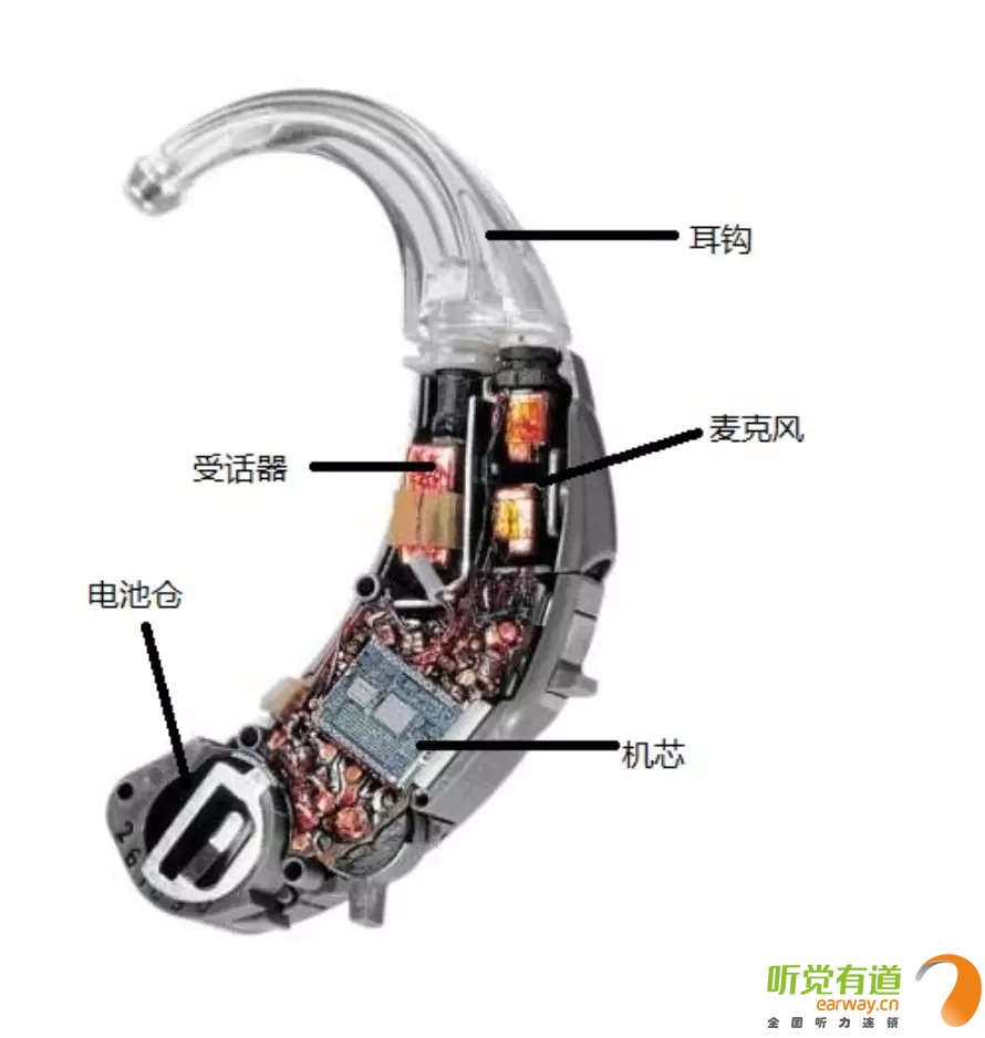 接下來,我們將以耳背式助聽器為例,向您介紹助聽器的外部配件及內(nèi)部構(gòu)造!