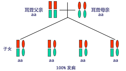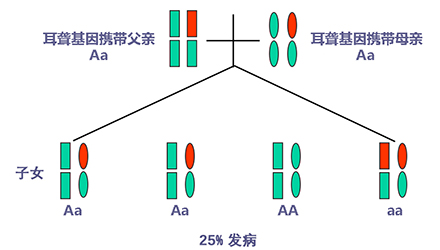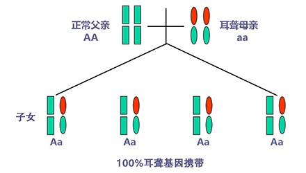 聽力正常有時(shí)只是“表象”,如果骨子里“隱藏”著聽損致病基因,這代“躲”過了聽力損失,可是下一代、下下一代呢?</p><p> 生活中我們會(huì)發(fā)現(xiàn),有一些父母雙方都有正常的聽力,但生出的孩子卻患有遺傳性聽力損失,很多人都會(huì)感到詫異,甚至父母本身都無法相信自己竟然生出了弱聽的孩子。</p><p> 其實(shí),此類“怪異事情”的發(fā)生離不開基因的作用,這與遺傳性聽損中的常染色體隱性遺傳密切相關(guān)。</p><p> 今天就帶大家看看:常染色體隱性遺傳性聽損是怎么一回事?它有什么特點(diǎn)呢?基因又是如何“從中作祟”的呢?</p><p> 先來說說隱性遺傳為什么“隱藏”在骨子里</p><p> 俗話說,龍生龍,鳳生鳳,老鼠的兒子會(huì)打洞。這些表現(xiàn)都是基因所賦予的、與生俱來的,我們稱這種表現(xiàn)是顯性的。但有時(shí),即便你骨子里帶著那份基因,可是沒有表現(xiàn)出來。</p><p> 例如上文說到的,父母雙方聽力正常,但其實(shí)他們?nèi)杂新爴p致病基因,這種表現(xiàn)就叫隱性。</p><p> </p><center><img alt="" src="/upfiles/201904260337585875.png" width="440" height="250" /></center><p></p><p> 接著說說常染色體隱性遺傳性聽損“隱藏”的聽力損失</p><p> 常染色體隱性遺傳性聽損是指與聽力損失表型相關(guān)的基因位于常染色體上,是最常見的遺傳性聽損,約占80%。 一般而言,這類聽力損失多指非綜合征型聽損,即聽力下降是其唯一臨床表現(xiàn),大多數(shù)患者癥狀早發(fā)且程度較重。</p><p> 這類聽力損失只有在來自父母的等位基因均攜帶致病突變時(shí)才出現(xiàn)聽力下降。</p><p> </p><center><img alt="" src="/upfiles/201904260338048765.png" width="440" height="250" /></center><p></p><p> 根據(jù)人類基因組命名委員會(huì)的規(guī)則,以DFNB來表示常染色體隱性遺傳性聽損。</p><p> 第一個(gè)致病基因座位表述為DFNB1,此后依據(jù)基因座發(fā)現(xiàn)及獲得命名的時(shí)間順序,依次命名為DFNB2,DFNB3……</p><p> 目前,常染色體隱性遺傳的基因座位一共有86個(gè)。其中DFNB1和DFNB18中各有兩個(gè)聽損致病基因,其他為各一個(gè)聽損致病基因。</p><p> 例如,GJB2基因是中國人最常見的聽損致病基因,在兒童非綜合征聽損中占40%,其基因座位為DFNB1。</p><p> </p><center><img alt="" src="/upfiles/201904260338091241.png" width="440" height="250" /></center><p></p><p> 聽損隱性遺傳表現(xiàn)各式各樣不是想“躲”就能“躲”</p><p> 涉及到不同聽損致病基因的共同作用,常染色體隱性遺傳方式有很多,下面就以最常見且最簡單的方式進(jìn)行舉例分析:</p><p> 1. 父母雙方聽力正常,都為聽損致病等位基因的攜帶者(Aa),則子女中有25%的概率患有聽力損失,50%的概率為聽損致病基因攜帶者。</p><p> </p><center><img alt="" src="/upfiles/201904260338147337.png" width="440" height="250" /></center><p></p><p> 2. 父母雙方都患有聽力損失,且聽損致病基因?yàn)榈任换?aa),則子女基因都為(aa),100%患有聽力損失,也就是代代相傳。</p><p> </p><center><img alt="" src="/upfiles/20190426033818859.png" width="440" height="250" /></center><p></p><p> 3. 父母一方為聽力正常者(AA),另一方患有聽力損失(aa),則子女基因都為(Aa),即聽力正常的聽損致病基因攜帶者。</p><p> </p><center><img alt="" src="/upfiles/201904260338249987.png" width="440" height="250" /></center><p></p><p> 4. 父母一方為聽力正常的聽損致病基因攜帶者(Aa),另一方患有聽力損失(aa),則子女基因50%的概率為聽力正常但攜帶聽損致病基因(Aa),50%的概率患有聽力損失(aa)。</p><p> </p><center><img alt="" src="/upfiles/201904260338297827.png" width="440" height="250" /></center><p></p><p> 5. 父母雙方都有聽力損失,但非等位基因,父親為(aaBB),母親為(AAbb),則子女基因都為AaBb,即100%的概率聽力正常。</p><p> </p><center><img alt="" src="/upfiles/201904260338427827.png" width="440" height="250" /></center><p></p><p> 常染色體隱性聽損遺傳的特征下一代“躲”得過嗎?根據(jù)如上分析,我們可以總結(jié)常染色體隱性遺傳性聽損具有以下特征:</p><p> 1. 聽損致病基因位于常染色體,因而聽損致病基因的遺傳與性別無關(guān),即男、女性的患病機(jī)會(huì)均等;</p><p> 2. 系譜中通常看不到連續(xù)傳遞現(xiàn)象,往往是散發(fā)病例,但同胞中可有多人患病;</p><p> 3. 患者的雙親一般不患病,但都是致病基因的攜帶者;</p><p> 4. 患者的同胞有1/4的風(fēng)險(xiǎn)患病,患者表型正常的同胞中有2/3的概率為攜帶者;</p><p> 5. 患者的后代一般不發(fā)病,但一定是聽損致病基因攜帶者;</p><p> 6. 近親婚配時(shí),子女的發(fā)病風(fēng)險(xiǎn)顯著提高,因?yàn)楣餐淖嫦瓤赡軅鬟f給他們共同的突變基因。</p><p> </p><center><img alt="" src="/upfiles/201904260338494272.png" width="440" height="250" /></center><p></p><p> 可見,遺傳性聽損有多種多樣的表現(xiàn)形式,需要細(xì)分遺傳模式。 父母的不同表型和不同聽損致病基因決定了其后代各種各樣的表現(xiàn)形式。</p><p> 正常聽力的父母可能生出弱聽的孩子,哪怕是同有聽損的父母也有可能生出聽力正常的孩子。</p><p> 隱性基因表現(xiàn)各異怎么辦?唯有基因檢測明確</p><p> 所以,要想知道自己及其配偶是否攜帶聽損致病基因,是否會(huì)遺傳給后代,后代的遺傳概率有多大,如何規(guī)避部分致病基因?qū)е碌穆犃ο陆?.....唯有通過遺傳性聽障基因檢測。</p><p> 才能幫助我們更好了解各種可能的表現(xiàn)形式,