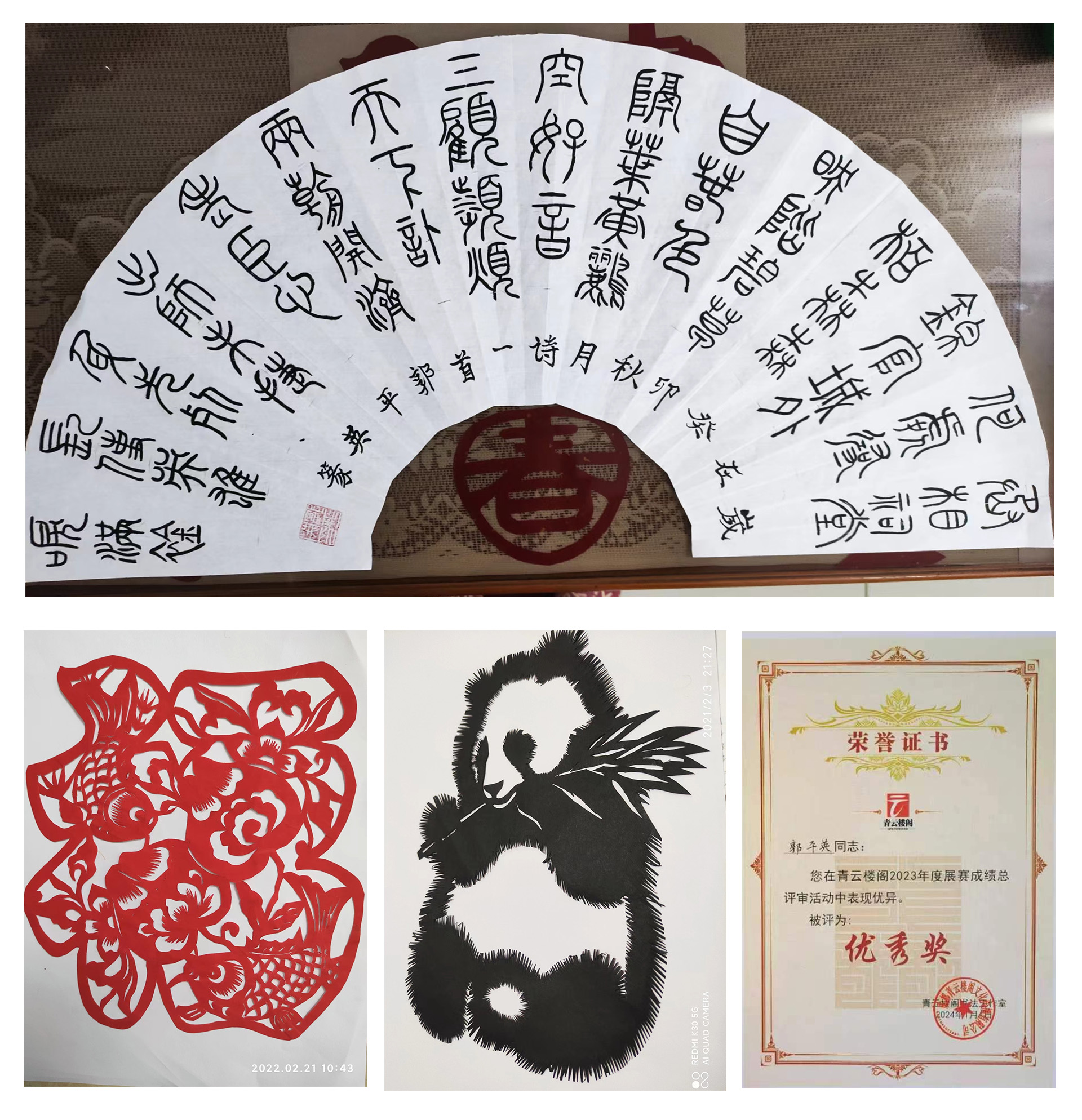 郭阿姨每天都要學(xué)習(xí)毛筆字、國(guó)畫(huà)、手工編制、窗花雕刻、彈奏鋼琴等。